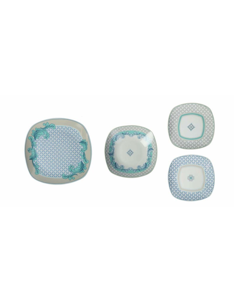 18-ti dílná sada talířů z porcelánu v modré/zelené barvě čtvercového tvaru.6 x jídelní talíř 25 x 25 cm6 x polévkový talíř 22 x 22 cm6 x dezertní talíř 18,5 x 18,5 cmMyčka na nádobí: anoMikrovlná trouba: anoItalský design plný elegance a originality, to je Brandani, italský výrobce designového...