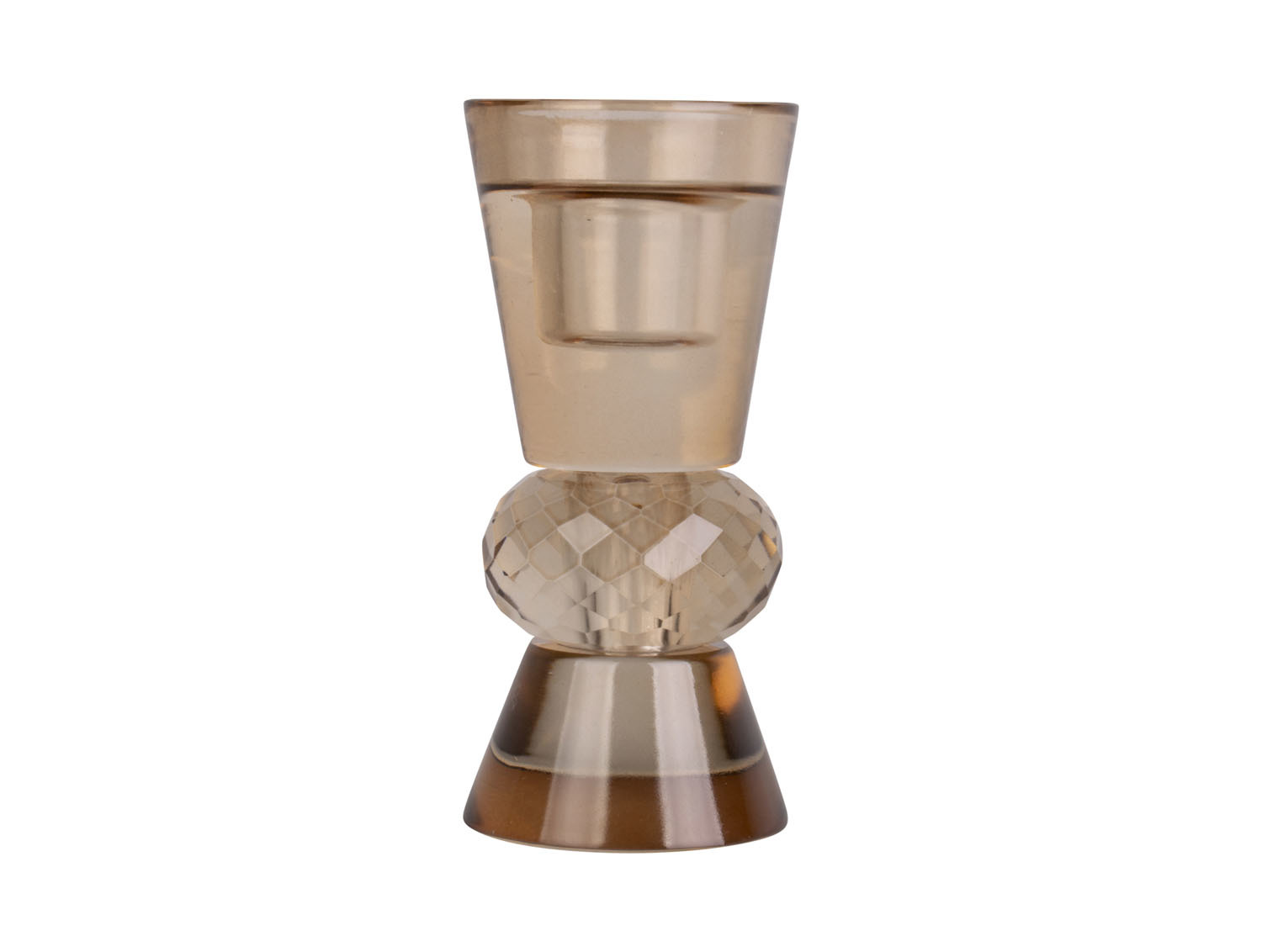 Skleněný svícen Crystal Art Duo Cone pískově hnědý 12 cm Present Time