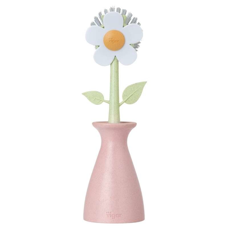 - Kartáč na mytí nádobí s nylonovými vlákny, která odstraní všechny nečistoty, aniž by poškrábala nádobí.- Víceúčelový kartáč s designem ve tvaru květiny, který stojí vzpřímeně v držáku ve tvaru vázy.- Všechny části jsou vhodné pro mytí v myčce nádobí.- Kartáč a držák jsou vyrobeny z bioplastů na biologické bázi, které se získávají výhradně z rostlin, v našem případě používáme vlákna z rýžových slupek. Kartáč na myčku nádobíPokud hledáte originální kartáč na myčku nádobí, jste na správném místě, protože ve Vigaru vytváříme právě originální domácí potřeby, které z těchto nudných úkonů udělají něco veselejšího. Jsme si jisti, že pokud budete muset mýt nádobí s obyčejným a smutným kartáčem na myčku, budete mít stejnou náladu... smutnou. Naším záměrem tedy je, aby když vezmete do ruky tento kartáč, byla tato činnost "zábavnější". Kartáč na myčku nádobí ve tvaru květiny Tento kartáč na myčku nádobí má drhnoucí část vyrobenou z nylonových vláken, takže nepoškrábe vaše nádobí. Kartáč na myčku z kolekce Florganic je dodáván s podstavcem držáku kartáče ve tvaru vázy, který dodá vašemu prostoru u dřezu barvu a dekoraci. Kartáč i držák tohoto kartáče na mytí nádobí jsou vytvořeny z vláken rýžových slupek.