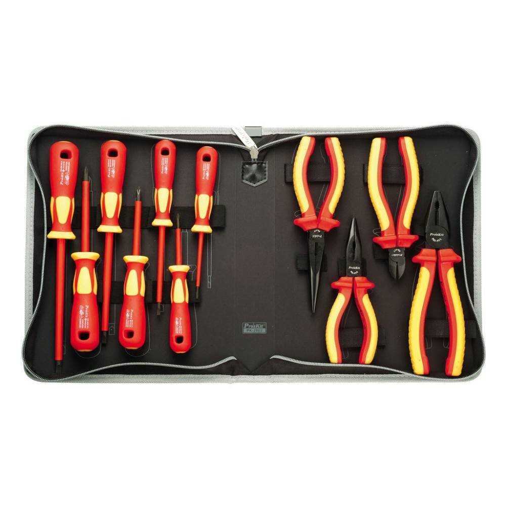Sada nářadí pro elektrikáře do 1000 VVlastnosti:- Certifikováno podle bezpečnostních standardů IEC/DIN EN 60900 1000V VDE.- Ergonomicky tvarované měkké rukojeti pro maximální pohodlí.- Obsahuje 7 ks izolovaných šroubováků a 4 ks izolovaných kleští pro většinu použití.- Velikost pouzdra: 294 x 240...