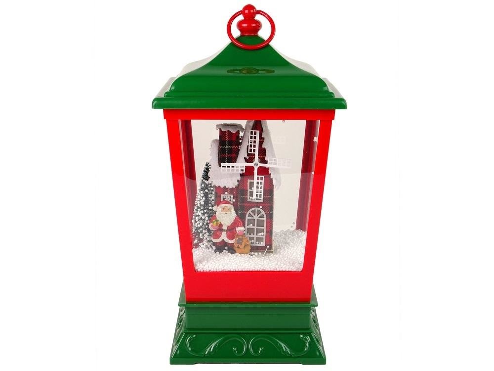 Lampion światełka, sypiący śnieg czerwono-zielona
