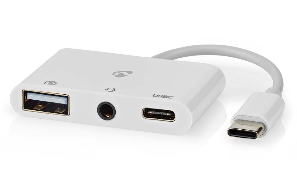 Adapter USB do notebooków, tabletów i smartfonów z gniazdem USB-C oferuje rozszerzenie o porty USB-C, USB oraz kombinowane złącze 3,5 mm.