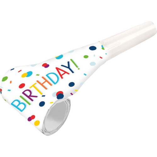 Papierowe trąbki imprezowe na przyjęcia urodzinowe. Możliwość łączenia z innymi produktami w kropki, takimi jak balon, obrus itp. Rozmiar: 30 cm. Opakowanie: 8 szt. przeczytaj całość