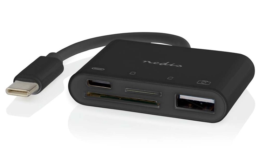 NEDIS USB hub/ 1x USB-C/ 1x USB-A/ 1x USB-C/ 4 porty port/ USB 2.0/ napájení z USB/ SD & MicroSD/ čerrný