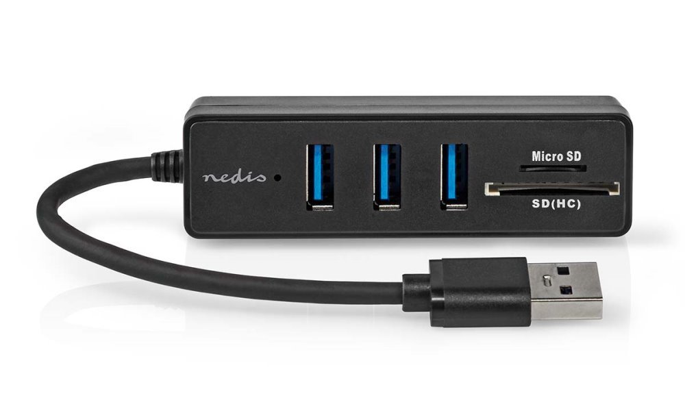 NEDIS USB hub/ zástrčka USB-A zástrčka/ 3x zásuvka USB-A/ 5 Portů/ USB 3.2 Gen 1/ napájení z USB/ 5 Gbps/ SD & MicroSD