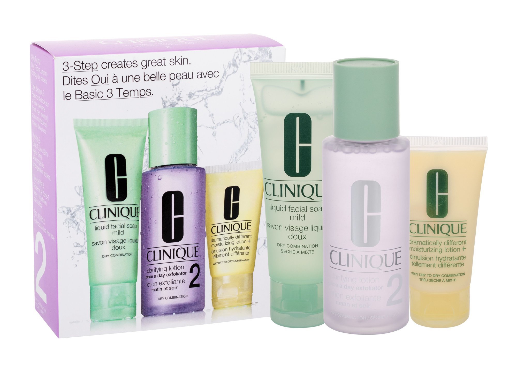 Clinique 3-Step Skin Care 2 čisticí voda Clarifying Lotion 100 ml + čisticí mýdlo Liquid Facial Soap Mild 50 ml + hydratační přípravek DDML 30 ml