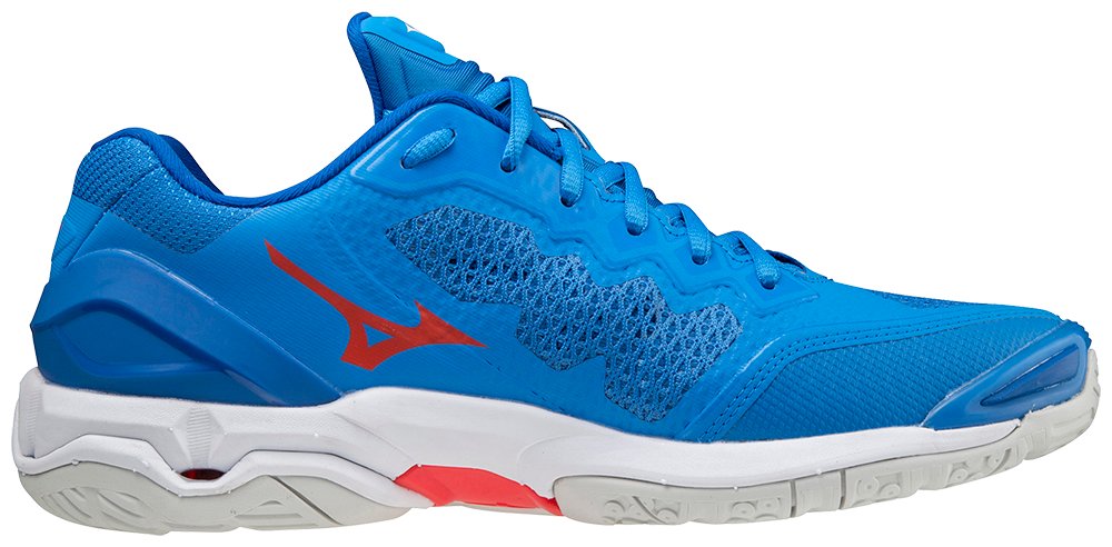 Mizuno WAVE STEALTH V / FRENCH BLUE / WHITE / IGNITION RED / Velikost boty: 46.5/11.5