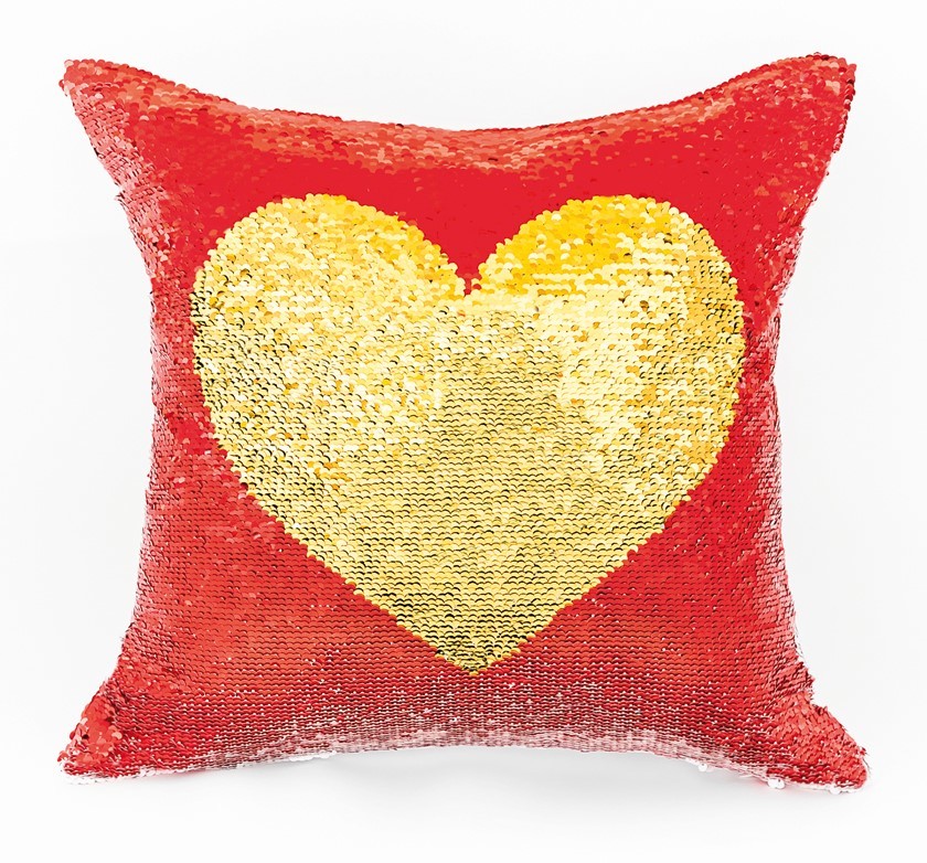 Povlak na polštář s motivem srdce v rozměru 40x40 cm. Polštář má aplikace z oboustranných barevných flitrů, které po přejetí rukou mění barvy. Ideální výzdoba do obýváku nebo dívčího pokoje.Dodání je možné i včetně vyjímatelné výplně. przeczytaj całość