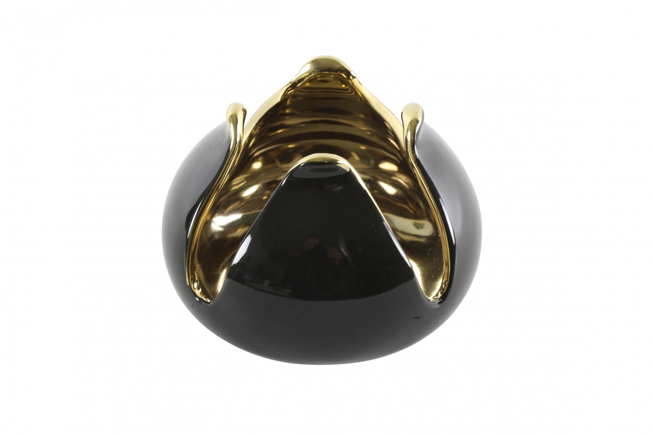 Keramický svícen černo-zlatý 8,5x12 cm