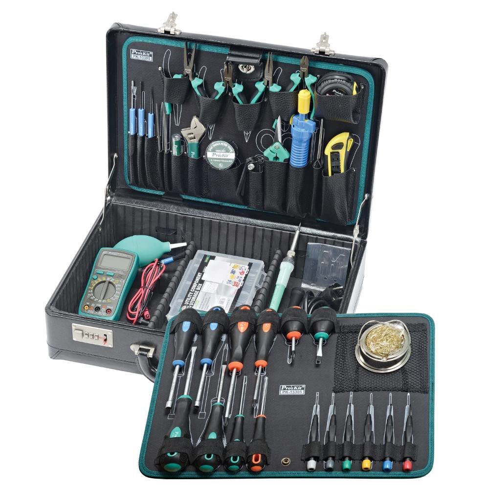 Velká sada profesionálního nářadí, vše přehledně v odolném kufříkuObsahuje:PM-736Dlouhé ploché kleště 135 mmPM-737Štípací kleště 113 mmPM-754Ploché kleště 135 mmPM-755Zahnuté kleště 130 mmDP-366DOdsávačka1PK-H026Nastavitelný klíč 6''9K003A-1Plochý pilník9K003B-1Kulatý pilníkMT-1210Digitální...