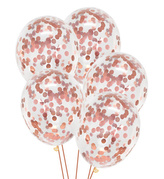 Průhledné balonky se RoseGold konfetami, 30 cm - 5 ks