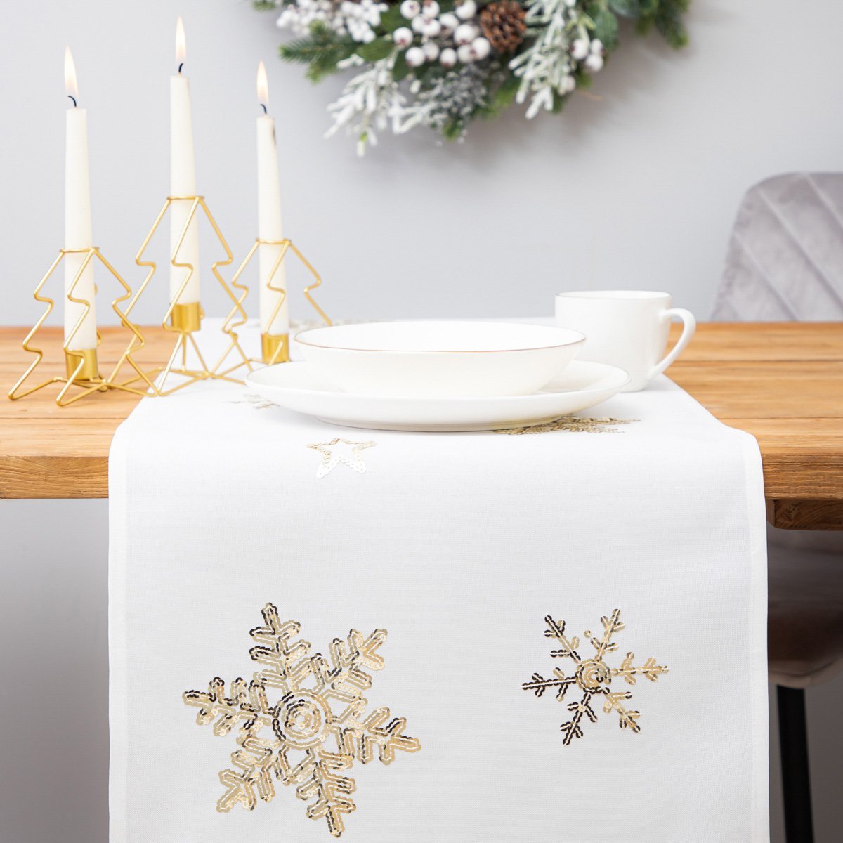 Vánoční běhoun na stůl | ISVEJ | zlaté hvězdy | 40x160 cm | XM22 832876 Homla