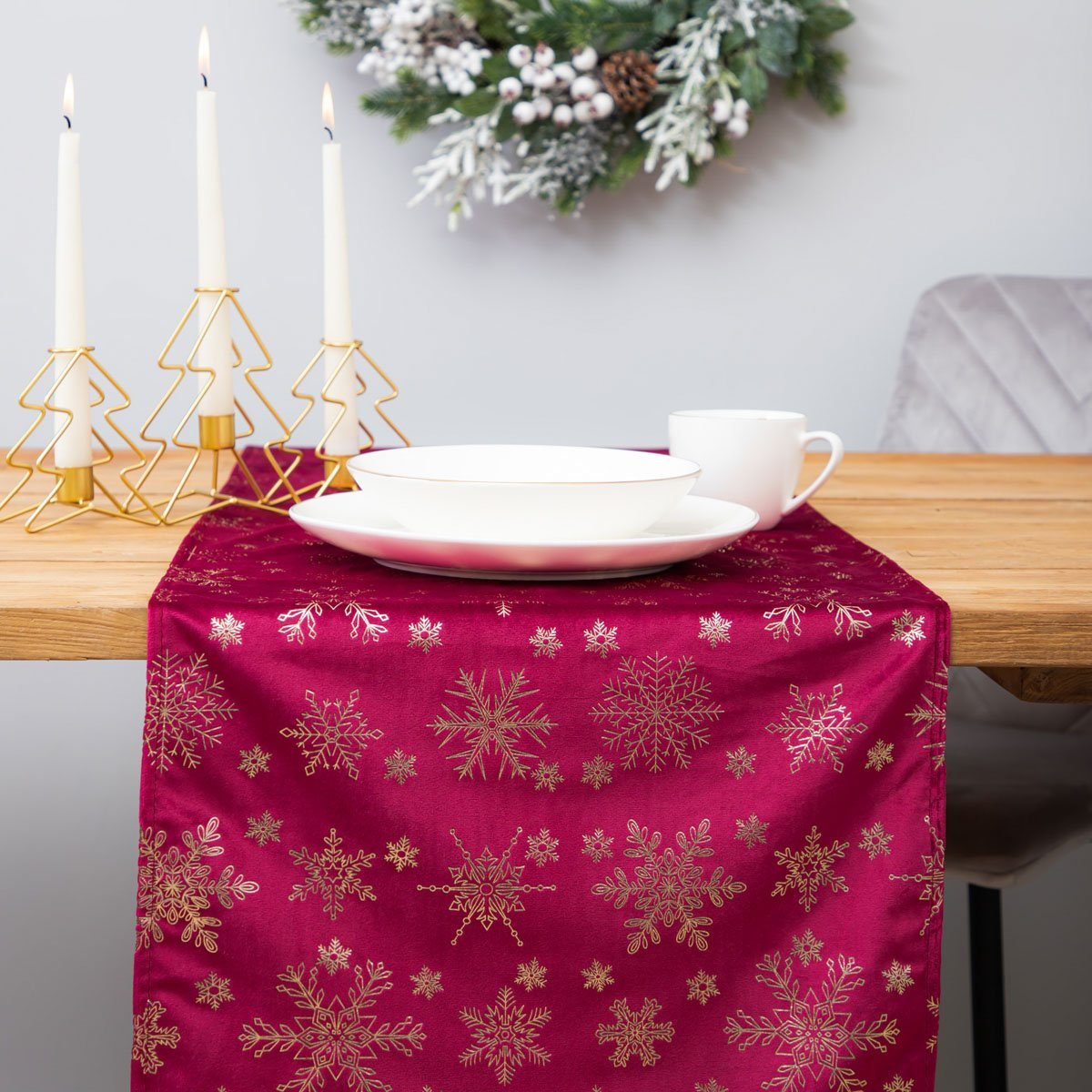 Vánoční běhoun na stůl | TANESI | v barvě zlatých sněhových vloček | 40x160 cm | XM22 832630 Homla