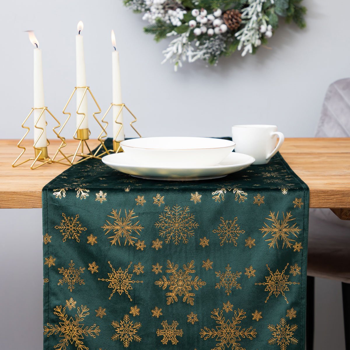 Vánoční běhoun na stůl | TANESI | ve zlaté barvě sněhových vloček | 40x160 cm | XM22 979112 Homla