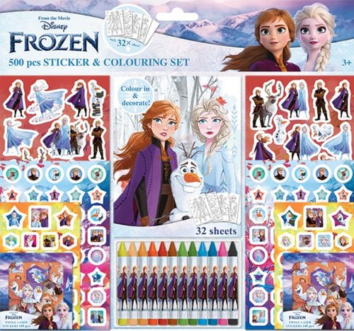 Samolepkový set s omalovánkami a voskovkami 500ks Ledové království