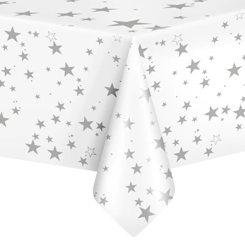 Plastový ubrus - stříbrné hvězdy 137 x 274 cm - Party Pal