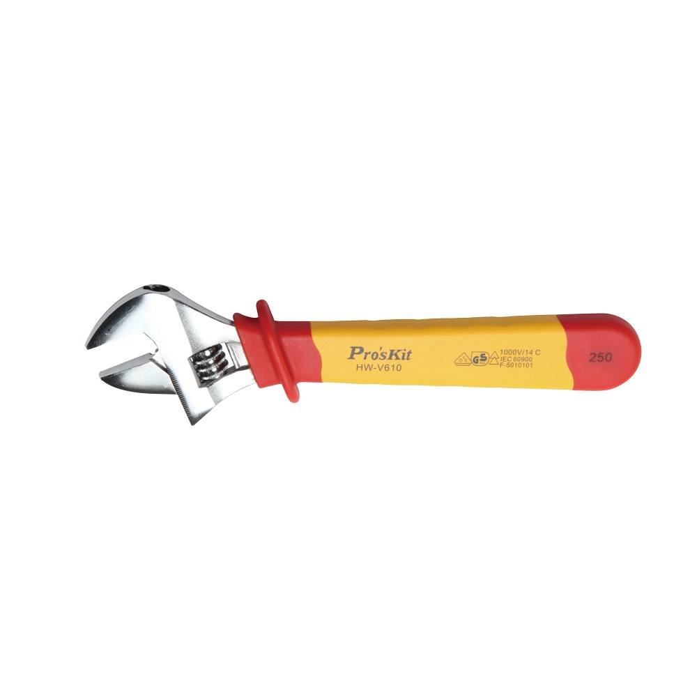 Francouzský klíč VDE 1000VVlastnosti- Hladké čelisti- Měřítko pro snadné nastavení- Chrom-vanadová ocel, kovaná, kalená olejem- Dvojbarevné, neklouzavé a izolované ergonomické držadlo pro maximální pohodlíOtevření čelistí max 34mmTloušťka čelistí 14-9mm przeczytaj całość