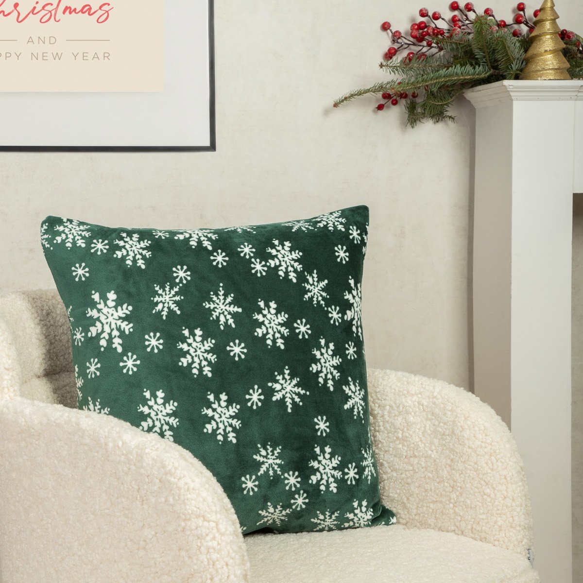 Vánoční polštář s výplní | SNOFLOCK | ve sněhových vločkách zelený | 45x45 cm | XM22 827803 Homla