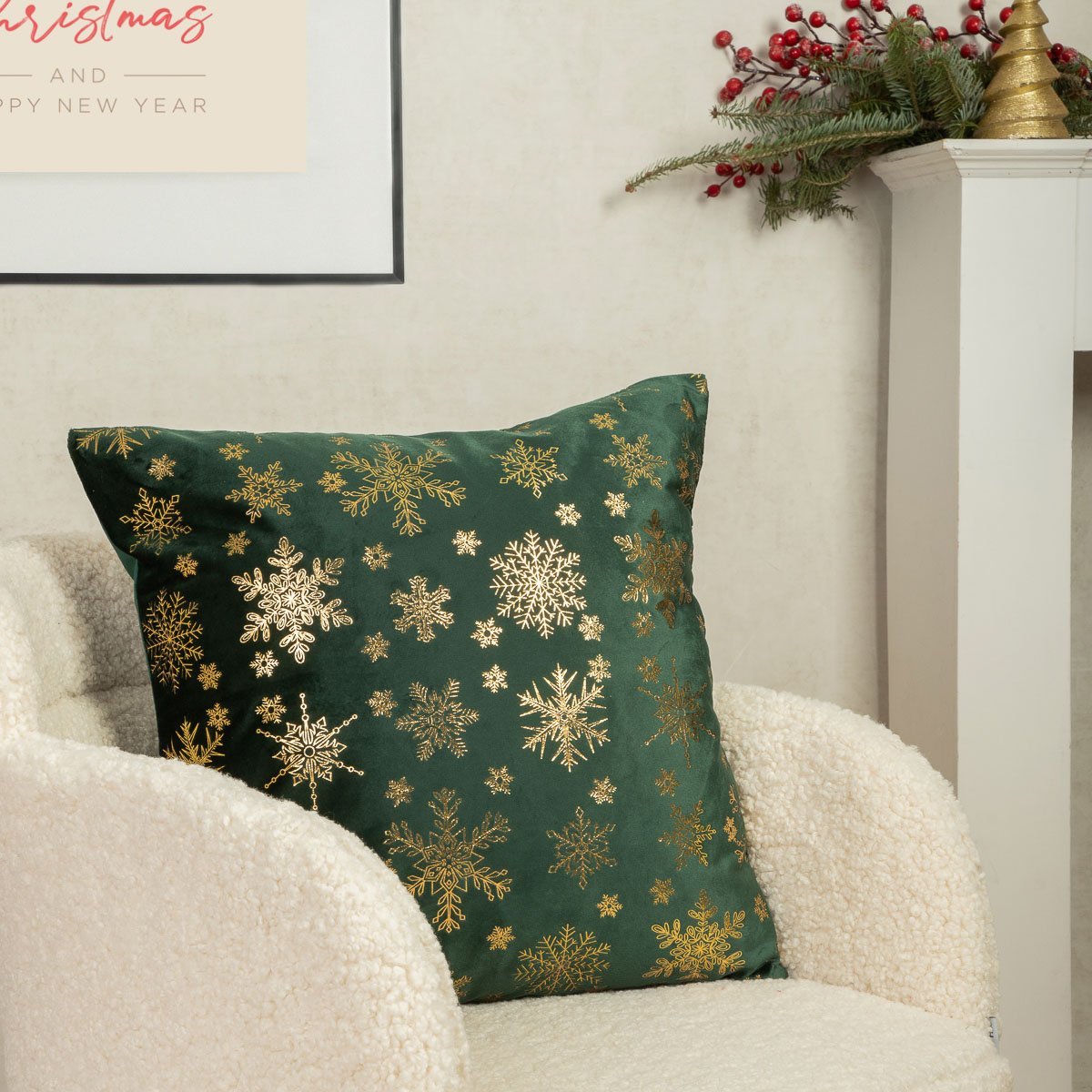 Vánoční polštář s výplní | TANESI | ve zlaté barvě sněhových vloček | 45x45 cm | XM22 805511 Homla