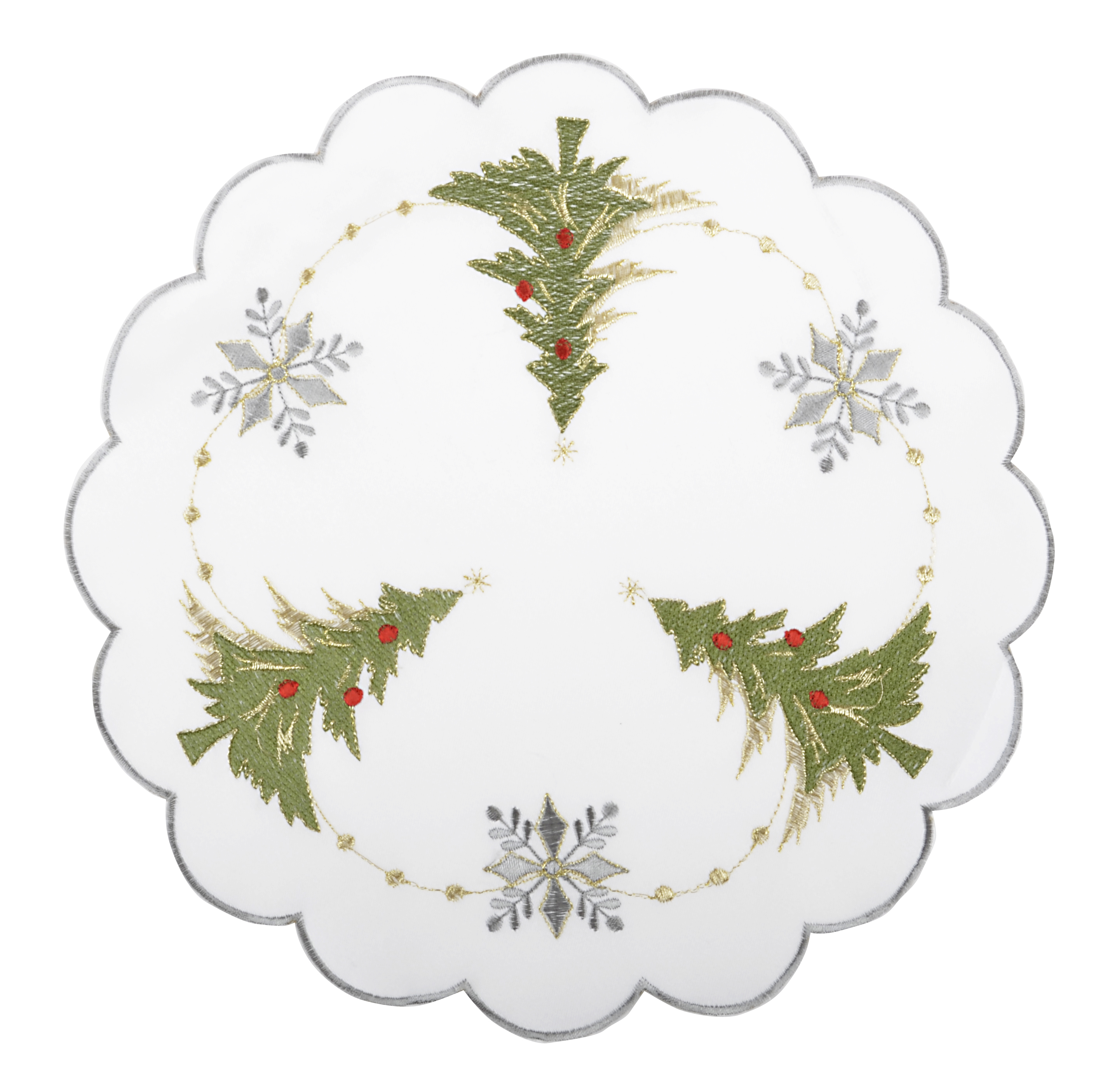 Vánoční ozdobný ubrousek s krásnými vyšívanými vánočními motivy v O 30 cm je důležitým doplňkem pro váš vánoční stůl. przeczytaj całość