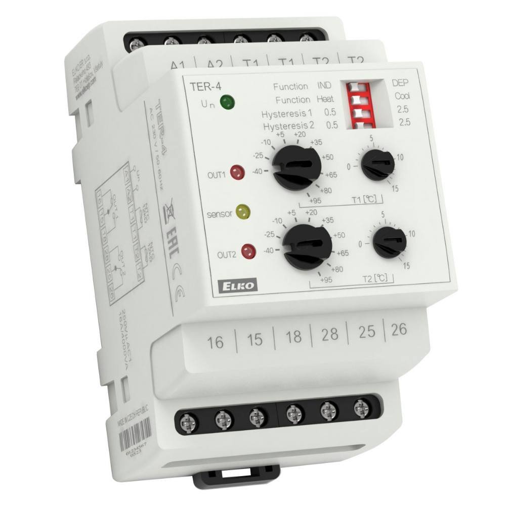 dvojitý termostat pro hlídání teploty v rozsahu -40.. +110°C v rozvaděčích, volitelná hystereze, externí senzor teploty s dvojitou izolací 3,6,12m,napětí AC/DC 24-240V,výstupní kontakt 2x spínací 16A/250V AC1,stav výstupu indikuje červená LED przeczytaj całość