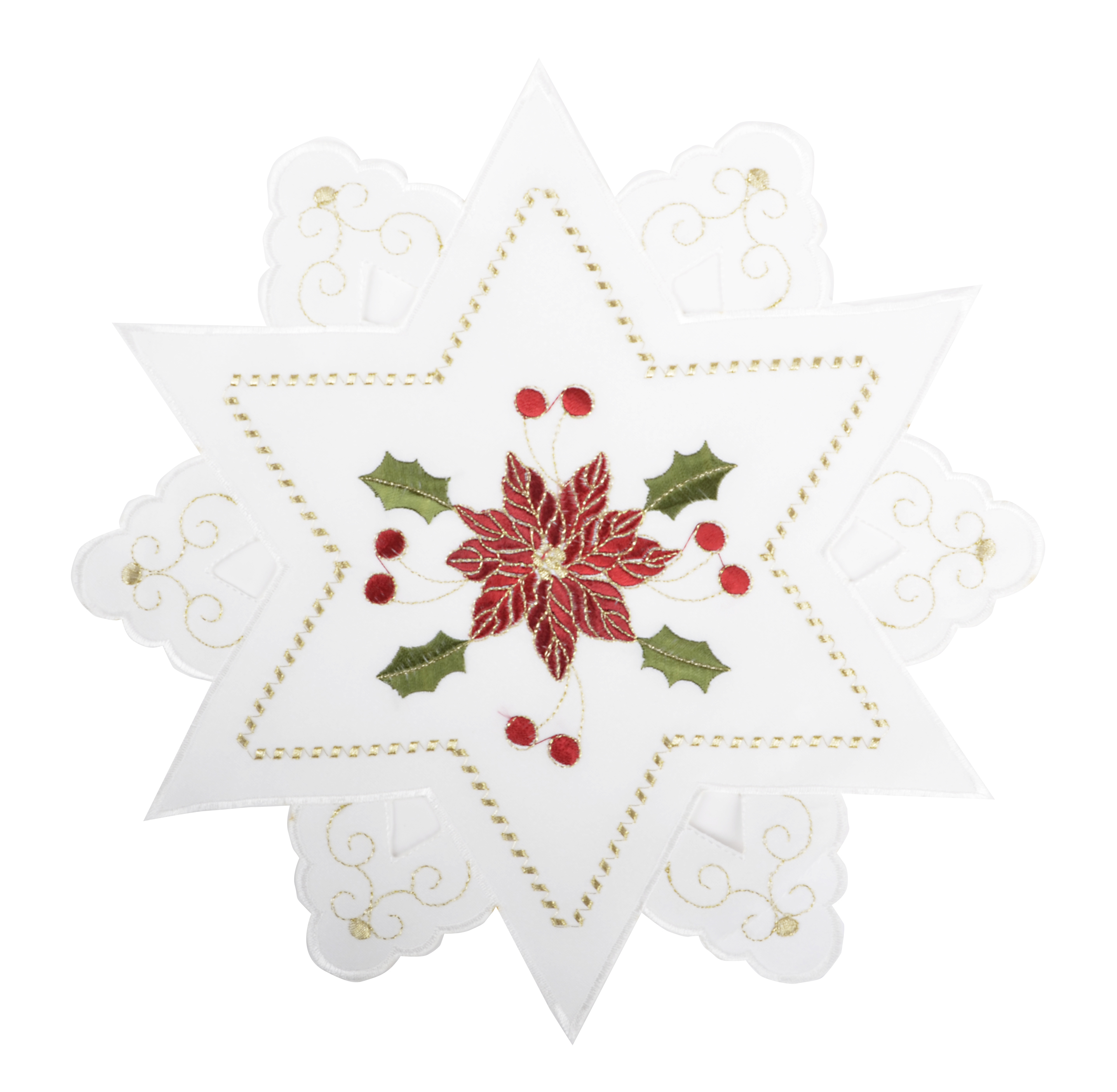 Vánoční ozdobný ubrousek s krásnými vyšívanými vánočními motivy v O 30 cm je důležitým doplňkem pro váš vánoční stůl. przeczytaj całość