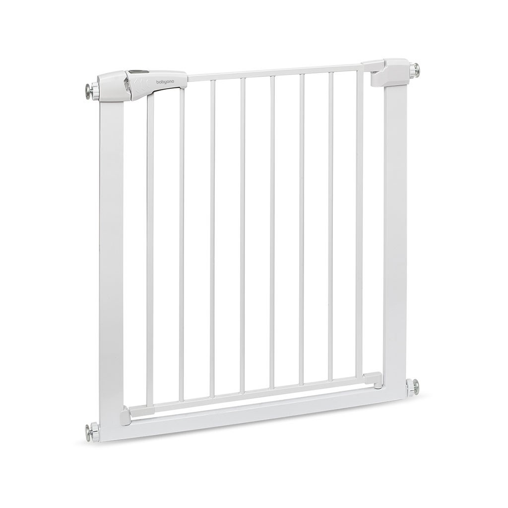 Można ją zamocować wyłącznie za pomocą rozpórek, dzięki czemu nie uszkadza futryn drzwi ani elementów schodów i nie wymaga wiercenia. Dzięki silikonowym podkładkom nie pozostawia śladów na punktach podparcia. Uniwersalne wymiary i dodatkowe przedłużenie umożliwiają montaż w przejściach o szerokości od 75 cm do 96 cm. Podwójne zamknięcie zwiększające bezpieczeństwo pozwala dorosłej osobie otworzyć bramkę jedną ręką, a jednocześnie skutecznie blokuje dostęp dziecka. Produkt jest zgodny z normą EN 1930, przed montażem prosimy o zapoznanie się z instrukcją.