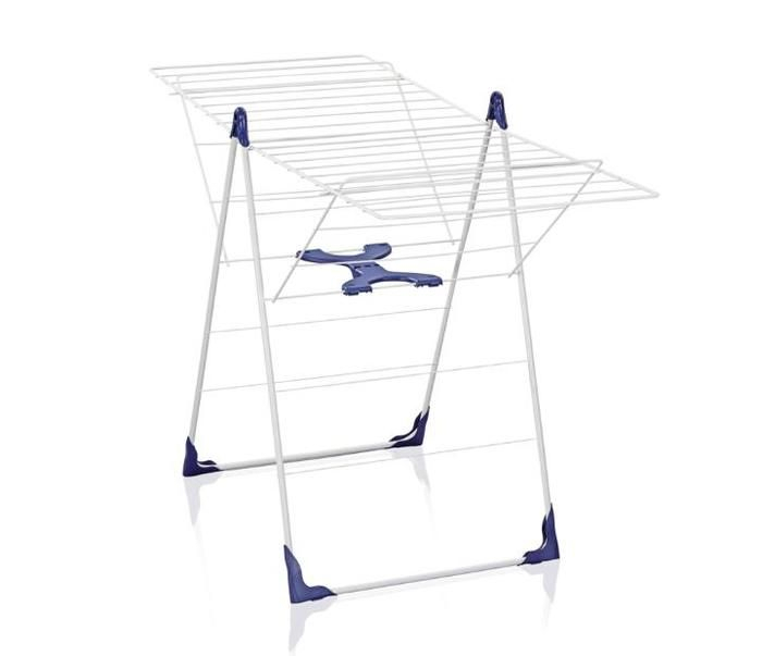 Ta suszarka oferuje przestronną powierzchnię suszenia o długości 20 metrów, co oznacza wystarczająco dużo miejsca na dużą ilość ubrań, a także elastyczność dzięki regulowanej wysokości bocznych skrzydełek do 140 cm. Dzięki temu możesz łatwo suszyć długie lub objętościowe elementy garderoby bez gniecenia. Drążki pokryte są trwałą powłoką z tworzywa sztucznego, która chroni odzież i ułatwia konserwację suszarki. Praktyczny mechanizm ułatwiający otwieranie zapewnia wygodną obsługę, natomiast solidna konstrukcja gwarantuje stabilne ustawienie podczas suszenia.