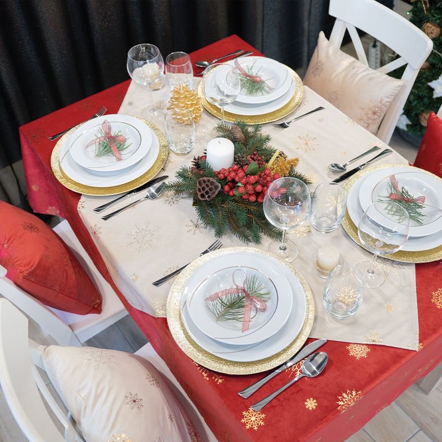 Vánoční ubrus na stůl SNOWFLAKE krémová/zlatá 85x85 cm Mybesthome