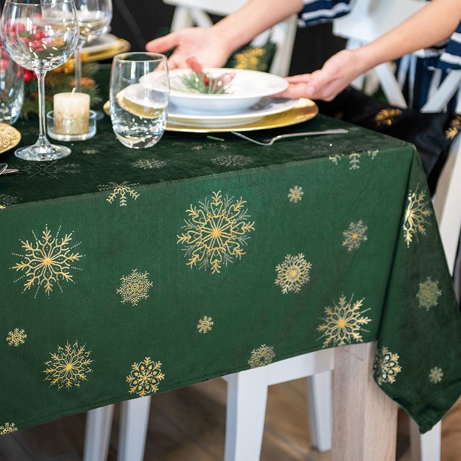 Vánoční ubrus na stůl SNOWFLAKE smaragdová/zlatá 110x160 cm Mybesthome