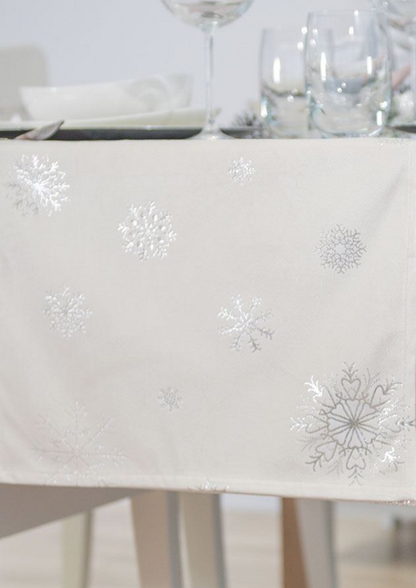 Vánoční ubrus - běhoun na stůl SNOWFLAKE krémová/stříbrná 40x140 cm Mybesthome