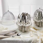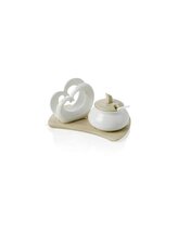 Porcelánový stojan na ubrousky s cukřenkou na bambusovém podnosu Brandani