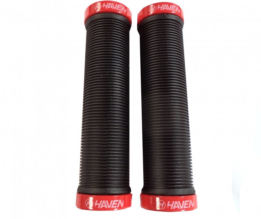 Gripy możliwe do używania nawet bez rękawic dzięki delikatnemu i przyjemnemu żłobkowaniu, które tłumi drgania i zwiększa pewność chwytu. Dwie obejmy zapobiegające obracaniu się. Materiał: guma. Długość: 130 mm. Kolor: czarny, czerwone obejmy przeczytaj całość