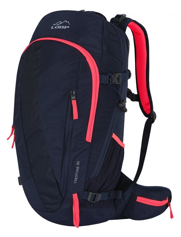 Turystyczny plecak Loap CRESTONE o pojemności 30 litrów jest świetnym towarzyszem na weekendowe wycieczki lub wędrówki „na lekko”. Dzięki swoim wymiarom może być odpowiednim kandydatem także jako bagaż podręczny do samolotu. Plecak wykonano z materiału Ripstop, który w codziennym użytkowaniu jest wystarczająco odporny na przetarcia i rozdarte. System nośny typu SBS („Solid Back System”) zapewnia wygodne noszenie, a dzięki swojej konstrukcyjnej wytrzymałości solidnie chroni zawartość wewnątrz plecaka. Anatomicznie ukształtowane szelki z regulowanym pasem piersiowym oraz anatomicznie uformowany pas biodrowy dobrze przylegają do ciała i zapobiegają odciskom przy dłuższym obciążeniu. Główna przestrzeń ładunkowa to jedna komora z górnym zamknięciem; do przechowywania drobniejszych rzeczy służy jedna kieszeń wewnętrzna oraz pięć kieszeni zewnętrznych. Ponadto plecak dysponuje pasami balančními oraz praktycznymi uchwytami do przymocowania dodatkowego wyposażenia. W zestawie znajduje się także miejsce na bukłak i zintegrowany pokrowiec przeciwdeszczowy chroniący zawartość przed przemoczeniem.