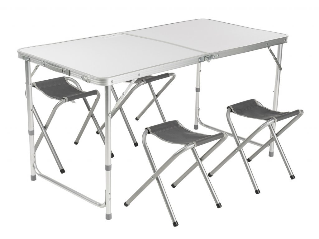 Rádi kempujete a chcete mít své pohodlí? Pořiďte si rozkládací stůl a 4 židle HAWAII. Stůl má hliníkovou konstrukci a rozměry 150 x 60 x 55 cm, židle jsou ocelové, s rozměrem 30 x 32 x 37 cm.Vhodné období:celoročníNosnost (kg):30 kg / 105 kgHmotnost:6,5 kgMat.:stůl: MDF 5 mm potisk, židle: 600...