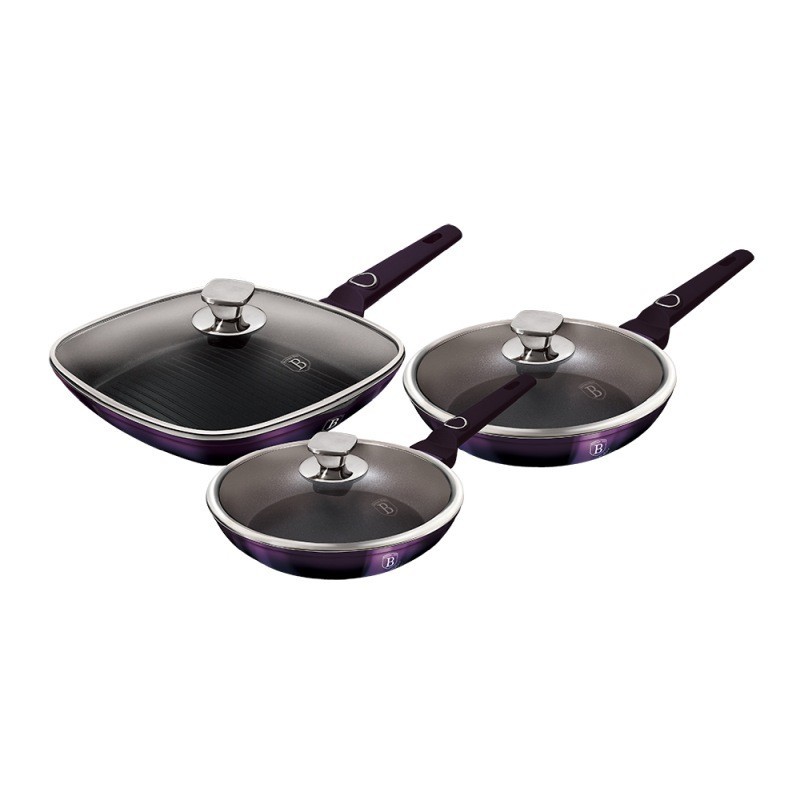 Třídílná sada pánví z kolekce Purple Eclipse zaujme nejen nepřehlédnutelným moderním designem ve fialovém metalickém provedení, ale především svými jedinečnými vlastnostmikaždá pánev má svoji skleněnou poklici s nerezovým úchytemdoménou této sady je 3vrstvý nepřilnavý povrch s mramorovým designem... przeczytaj całość