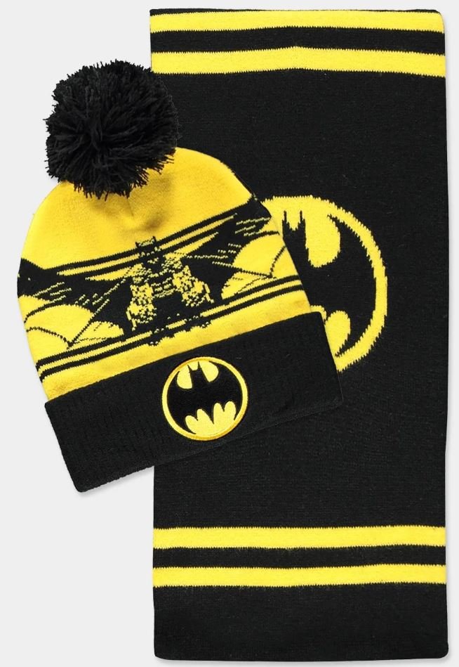 Oficiální produkt - zimní set, čepice a šály z katalogu výrobků s grafikou a licencí populárního filmového a komiksového hrdiny Batman od společnosti DC Comics.Zboží je legálně licencováno a prodáváno se souhlasem vlastníků licenčních práv.Atraktivní černo-žlutý zimní set s čepicí a šálou s...