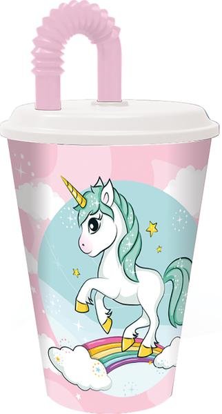 KUBEK ZE SŁOMKĄ JEDNOROŻEC 430ML, PLASTIK przeczytaj całość