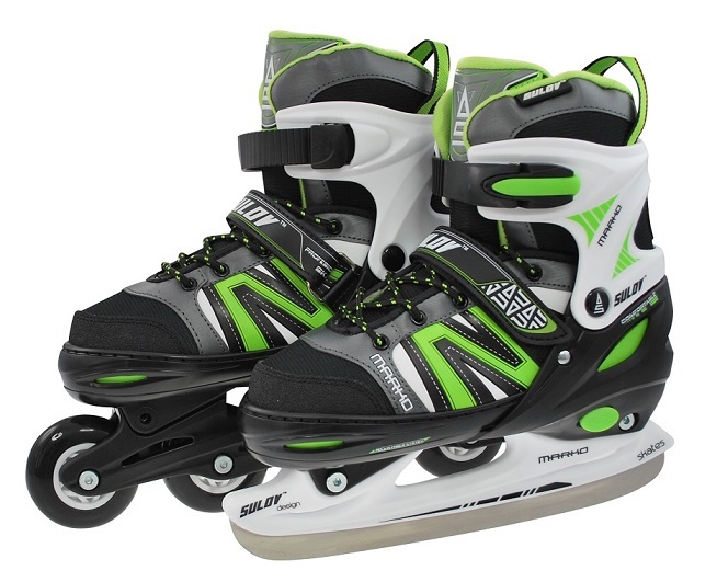 Chlapecké nastavitelné brusle s vyměnitelným podvozkem na lední nebo in-line bruslení. Rychleschnoucí prodyšná výstelka pro pohodlné nošení. Brusli lze jednoduše nastavit dle potřeby na 4 velikosti pouhým stisknutím tlačítka na boku v patě brusle.vnější materiál: resistant PP, technický NYLON,...