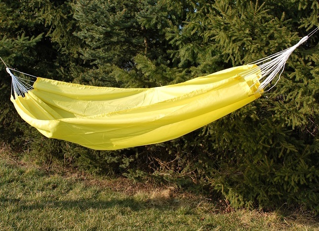 Hamak, w którym świetnie odpoczniesz zarówno w ogrodzie przy domu czy domku letniskowym, jak i na kempingu podczas wakacji.