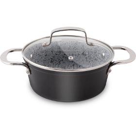 Kastrol Ø 18 cm GRANITLamart LT1252Vyrobeno z vysoce odolného hliníku.Pánev opatřena vnitřním povrchem odolným proti oděru a připalování, silným dnem a velmi elegantní soft rukojetí.Nepřilnavý materiál bez použití PFOA (nevypařují se žádné toxické látky při přehřátí) teplotně vysoce odolný,...
