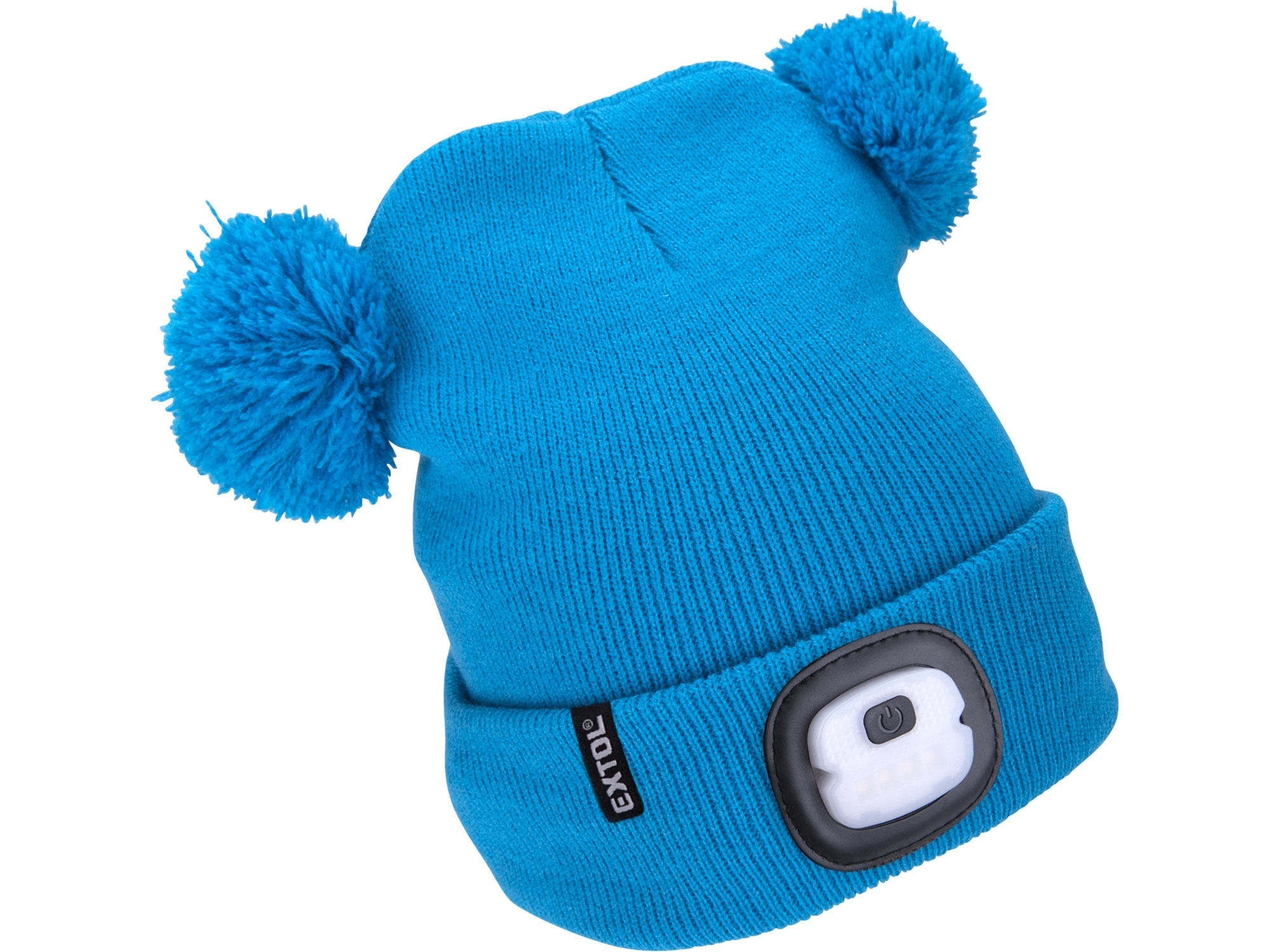 EXTOL LIGHT čepice s čelovkou 4x25lm, USB nabíjení, modrá s bambulemi, dětská