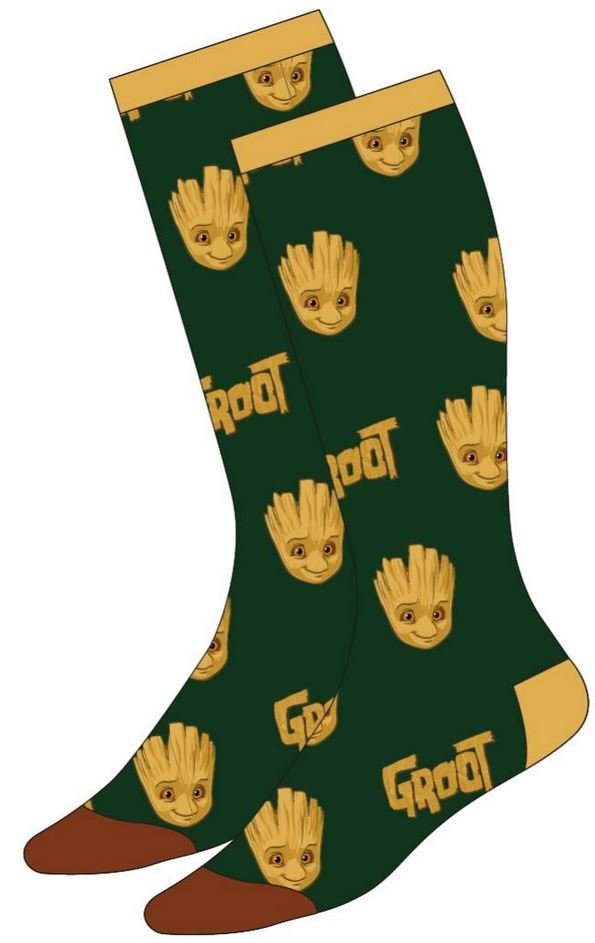 Oficiální produkt - pánské ponožky z katalogu zboží s grafikou a licencí série akčních filmů Guardians of the Galaxy. Zboží je legálně licencováno a prodáváno se souhlasem vlastníků licenčních práv.Zelený pár ponožek s grafikou Groota, inspirovaných sérií akčních filmů Guradians of the Galaxy...