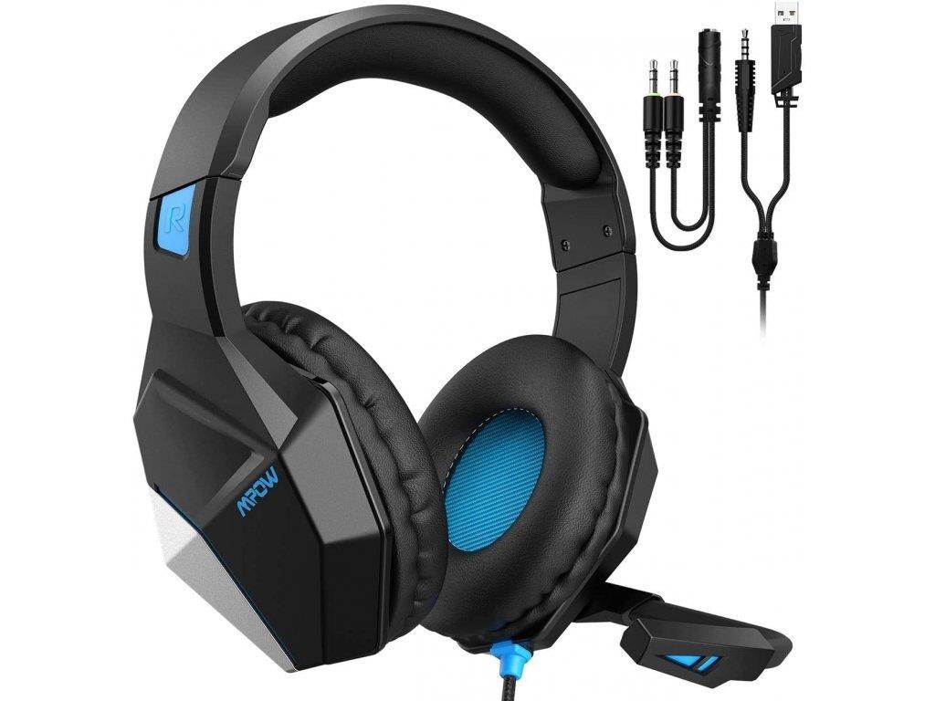 Herní sluchátka Mpow EG10 pro Playstation 4, PC, Xbox One, notebook, tablet, iPad, 3.5 mm jack, mikrofon s potlačením hluku, měkké chrániče sluchu, otočný design.