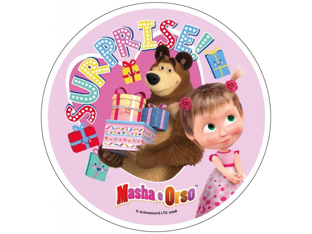 Jedlý papír s pohádkovými motivy – Máša a medvěd srdce. Průměr 21 cm. przeczytaj całość