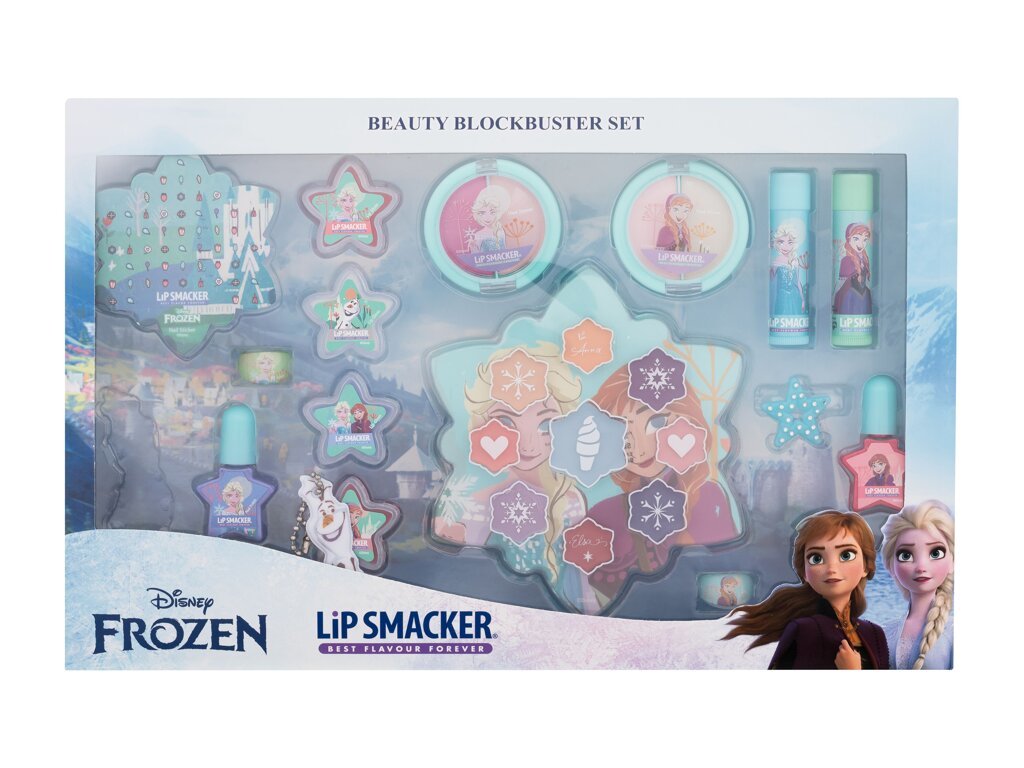 Lip Smacker Disney Frozen balzám na rty 2 x 3,4 g + rozjasňující krém 3 x 0,8 g a 6 x 0,9 g + lesk na rty 4 x 2 g + lak na nehty 2 x 4,25 ml + paletka tvářenek 0,75 g + paletka tvářenky a rozjasňovače 0,75 g + prsten 2 ks + spona do vlasů + samolepky na n