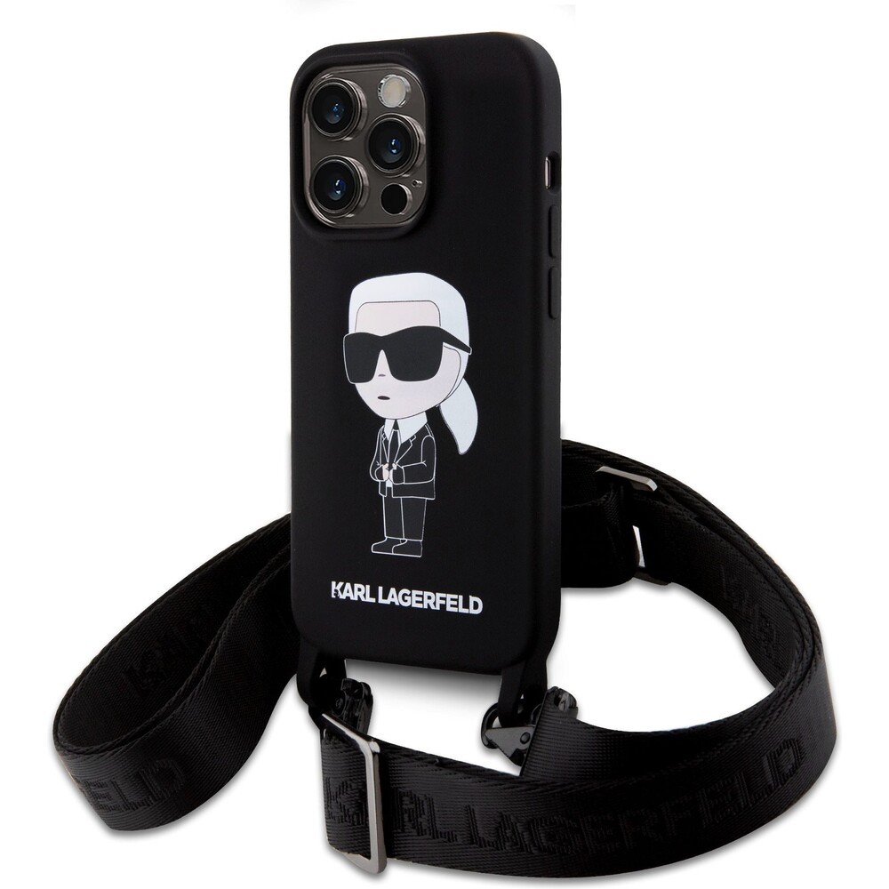 Karl Lagerfeld Liquid Silicone Crossbody Ikonik Kryt iPhone 15 Pro Max černý