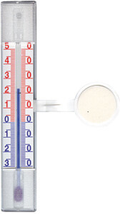 Płaski termometr okienny, samoprzylepny, wymiary 140 × 25 mm, plastikowy. przeczytaj całość