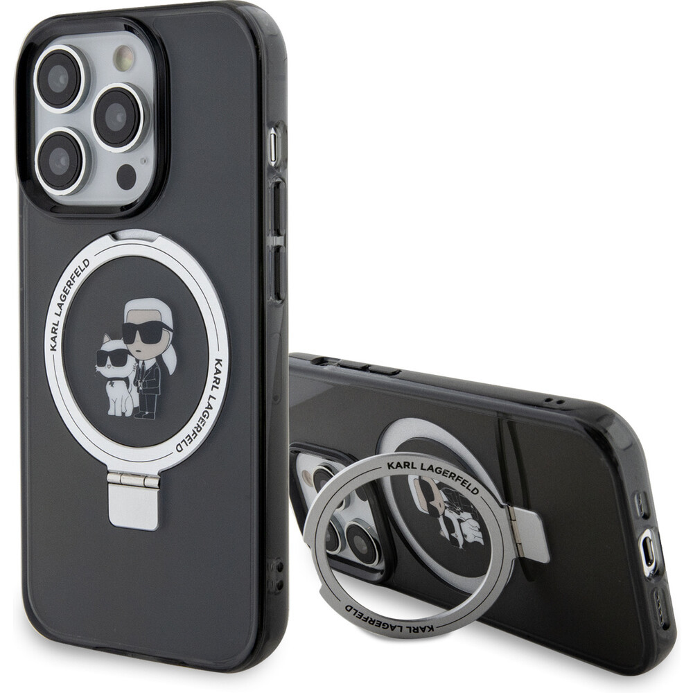 Karl Lagerfeld Ringstand Karl and Choupette MagSafe Kryt iPhone 15 Pro Max černý