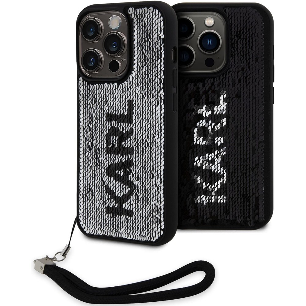 Karl Lagerfeld Sequins Reversible Kryt iPhone 15 Pro černý/stříbrný